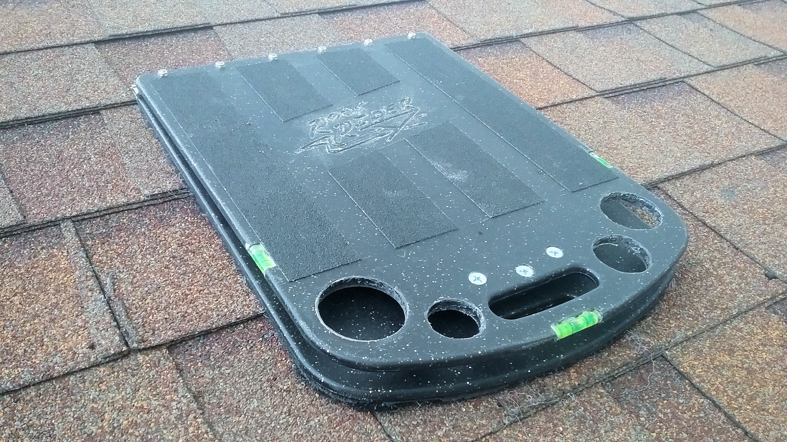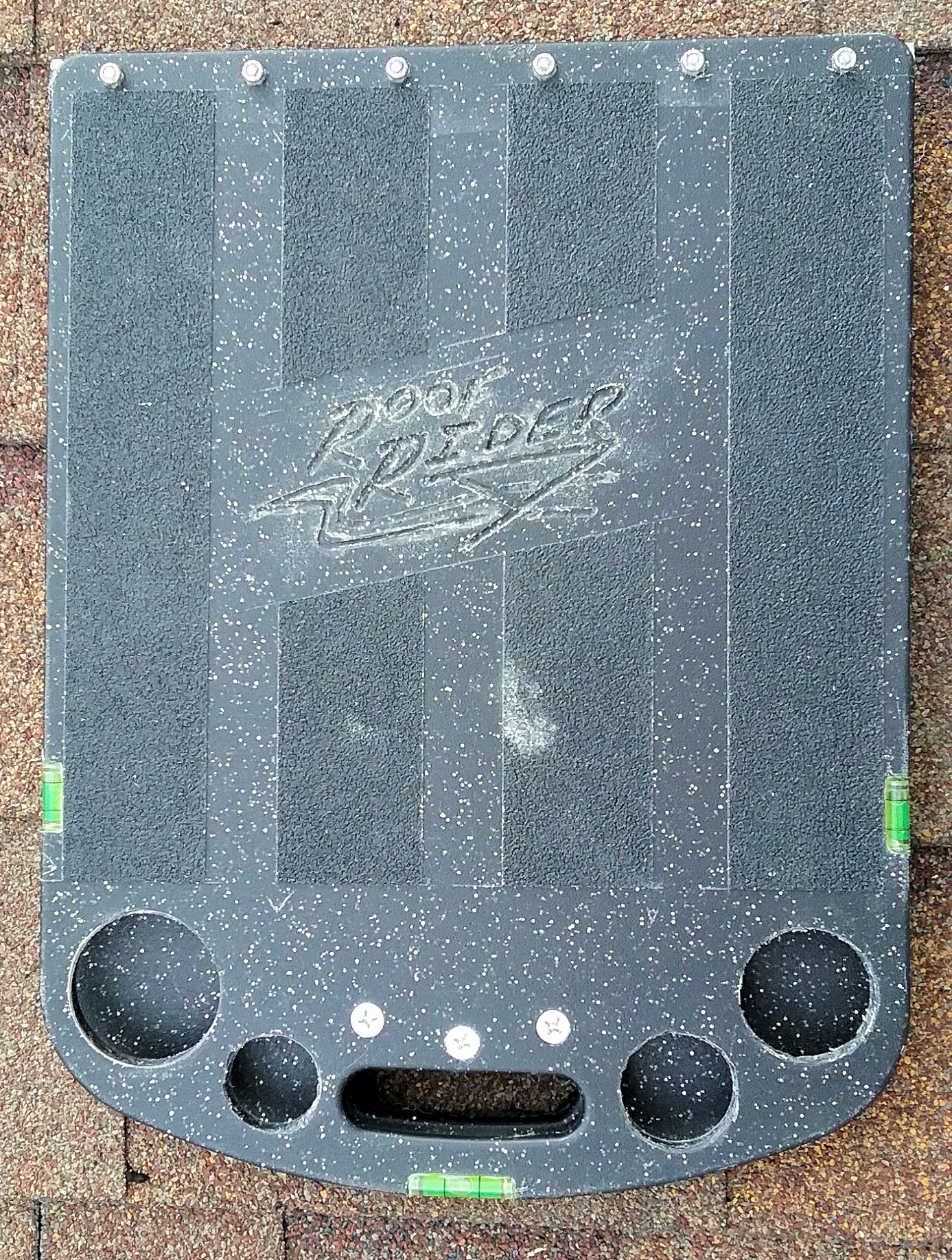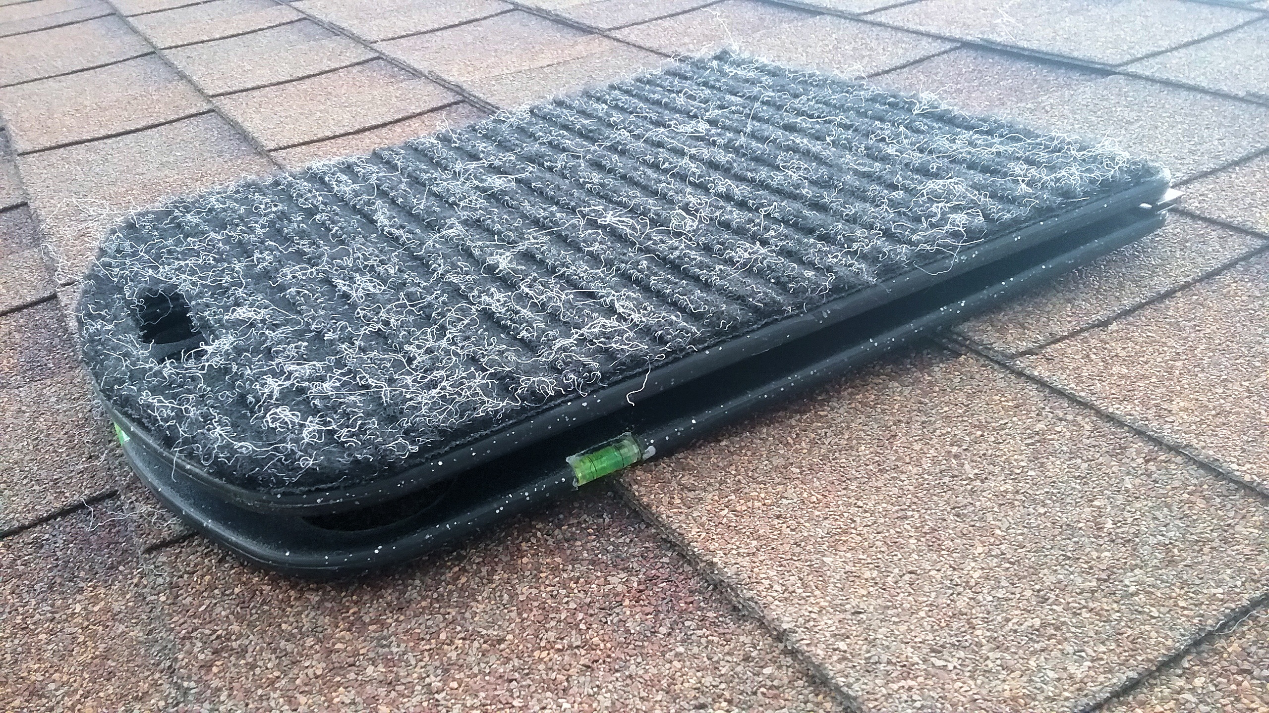 The underside of the Roof Rider is fitted with a layer of carpet which is the key element in preventing slips off a shingled roof. |