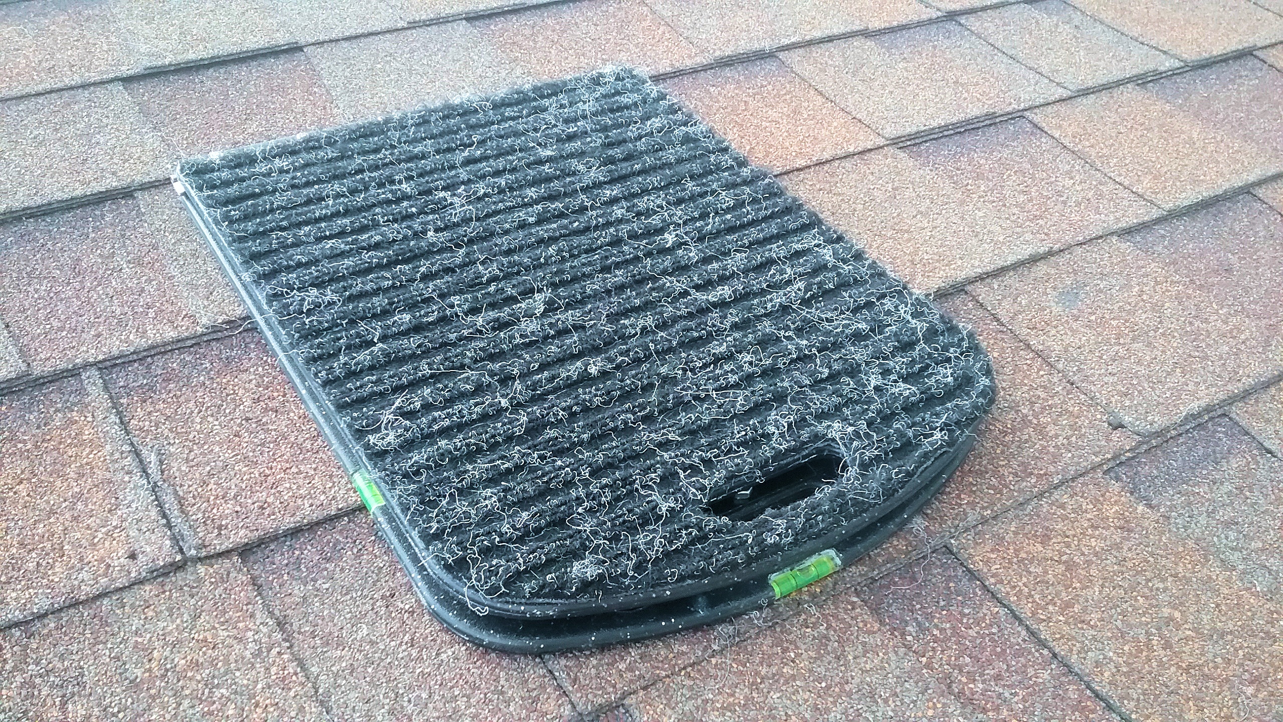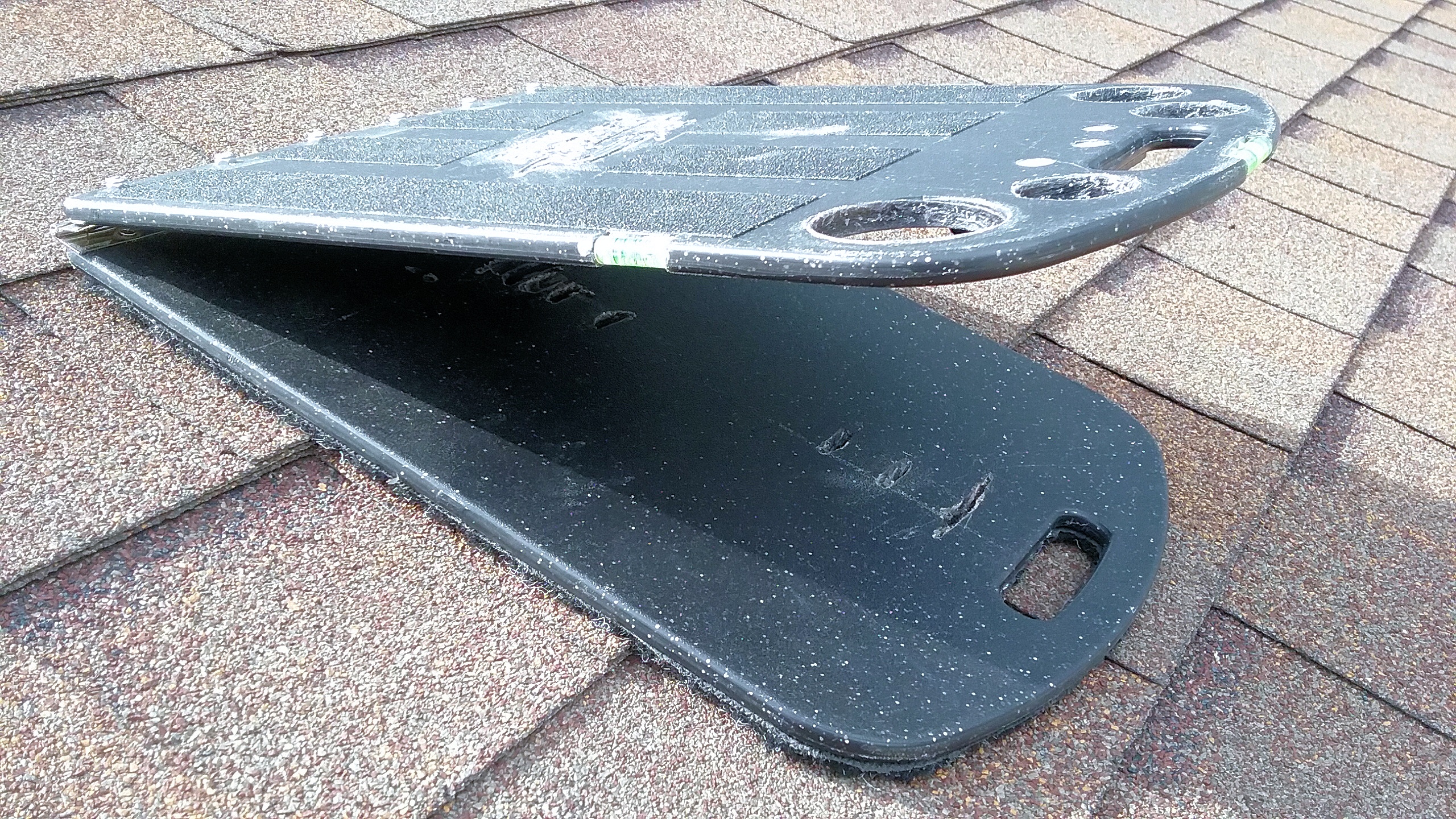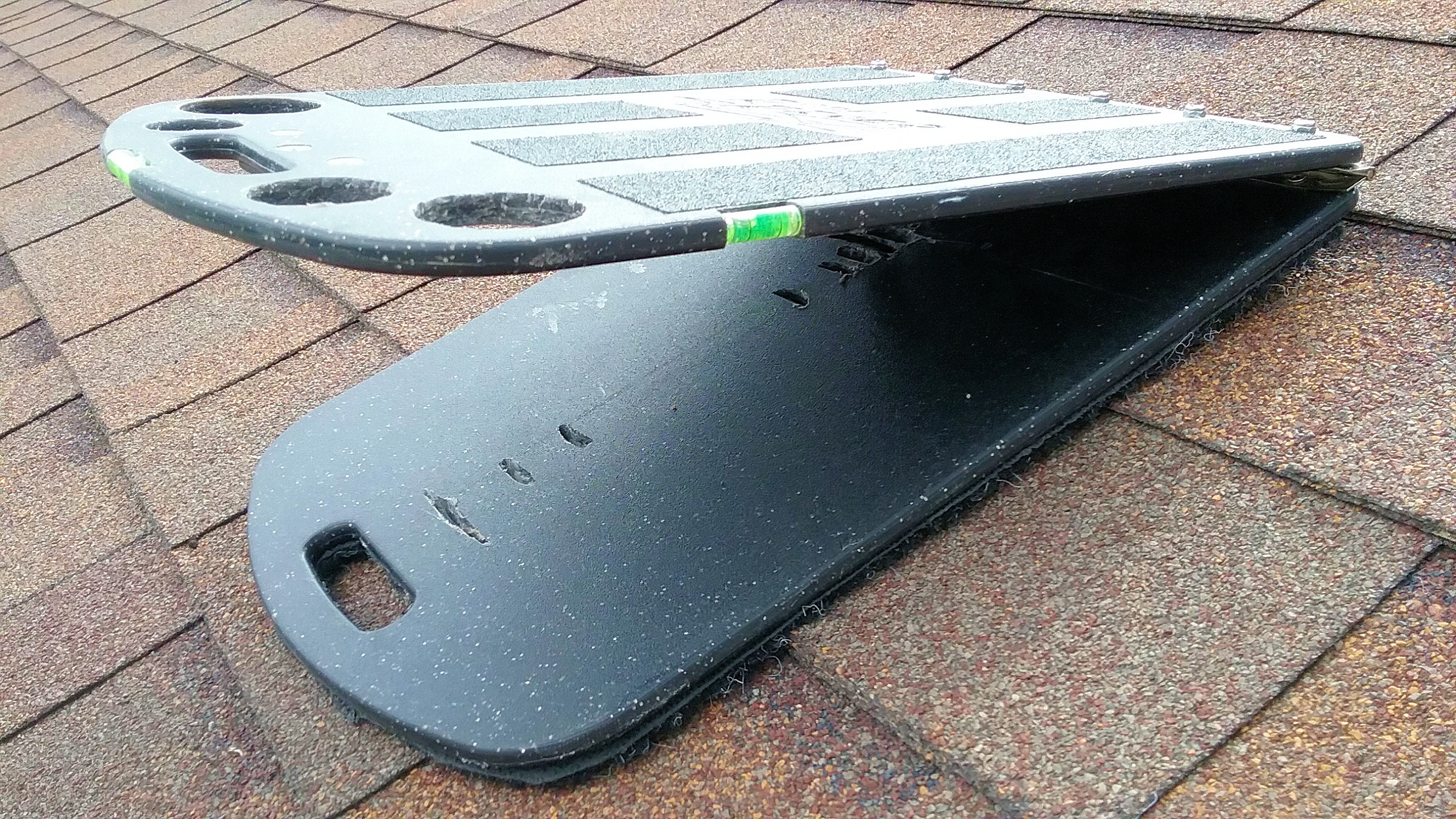 The underside of the Roof Rider is fitted with a layer of carpet which is the key element in preventing slips off a shingled roof. |