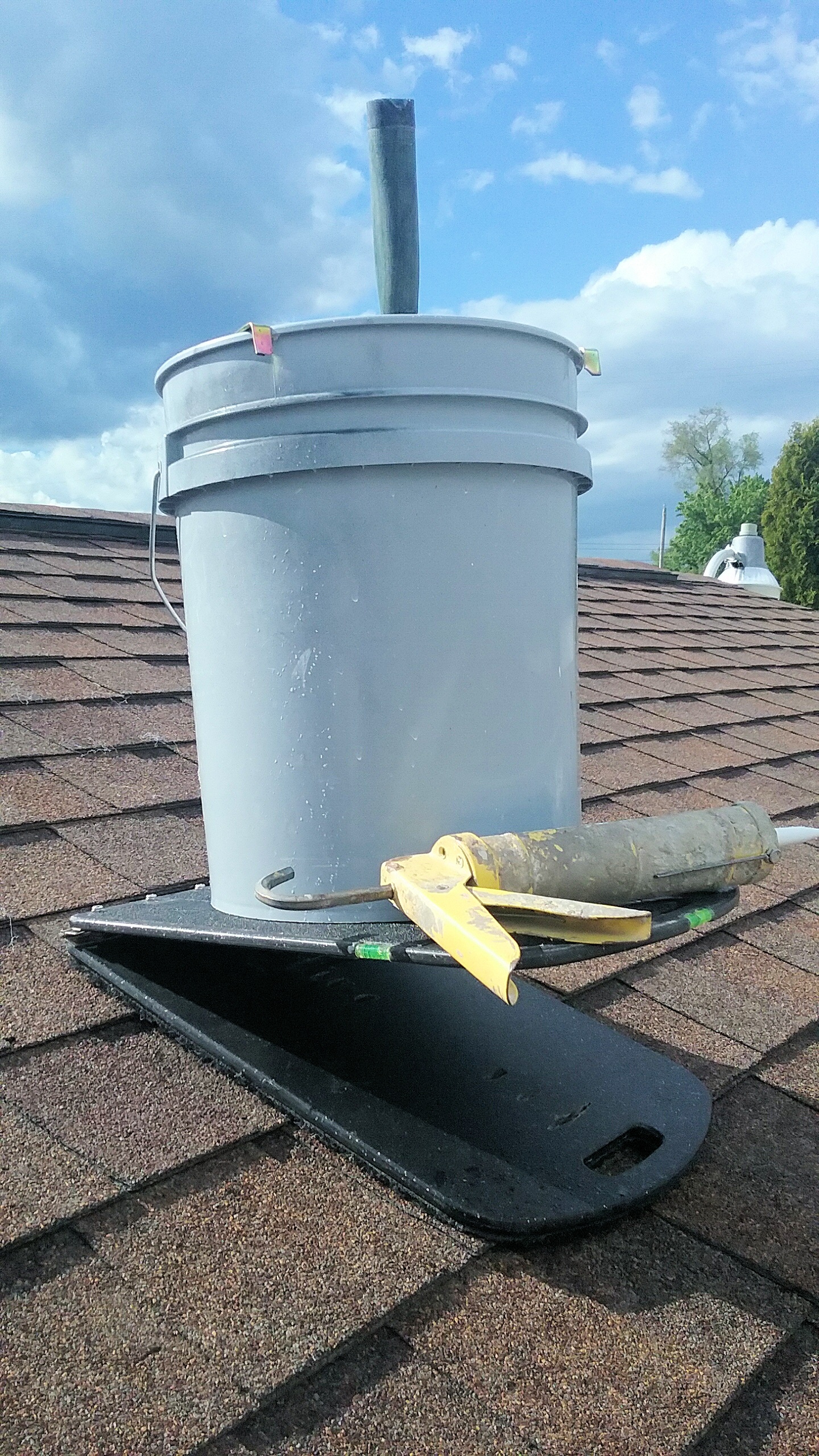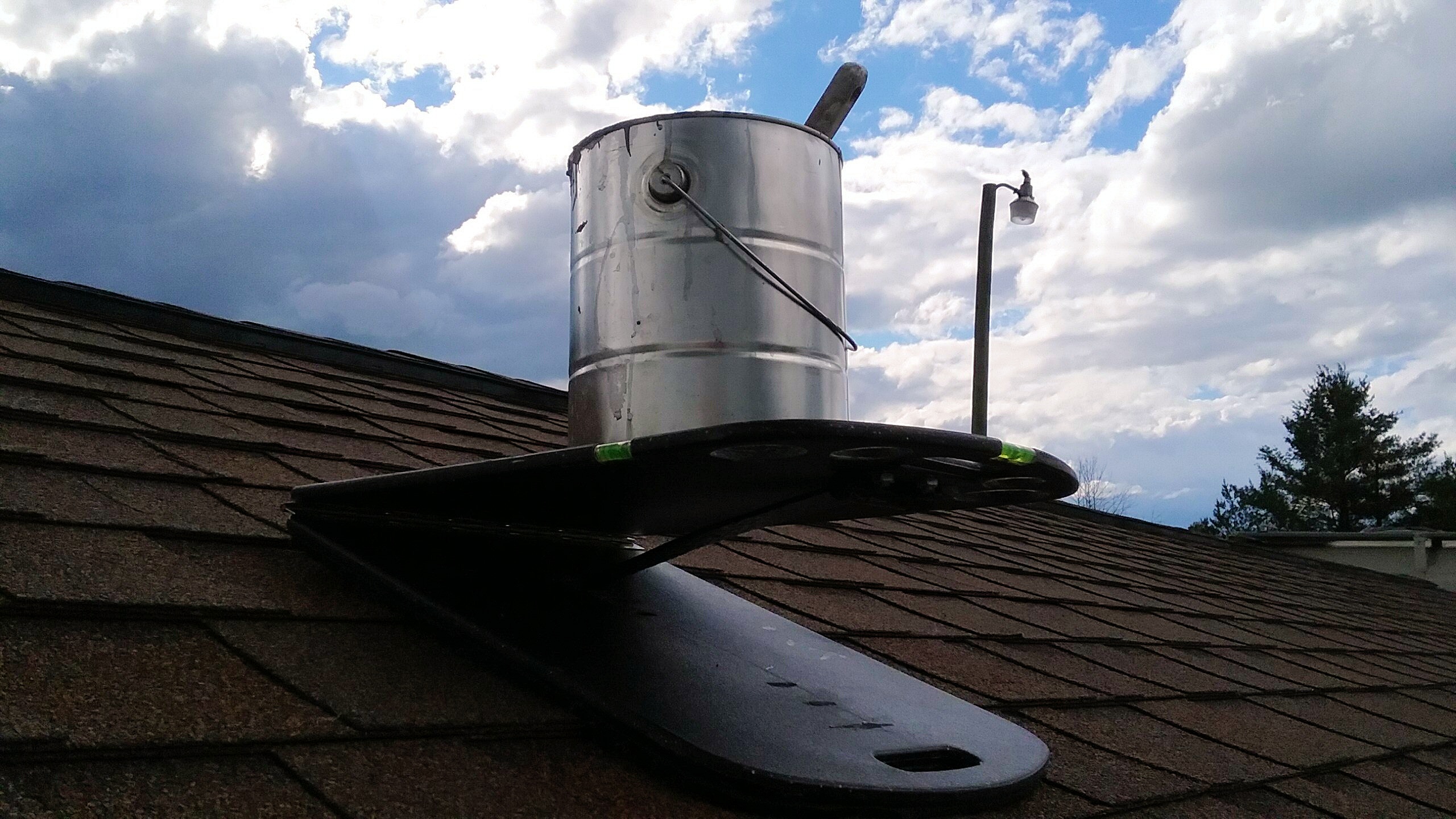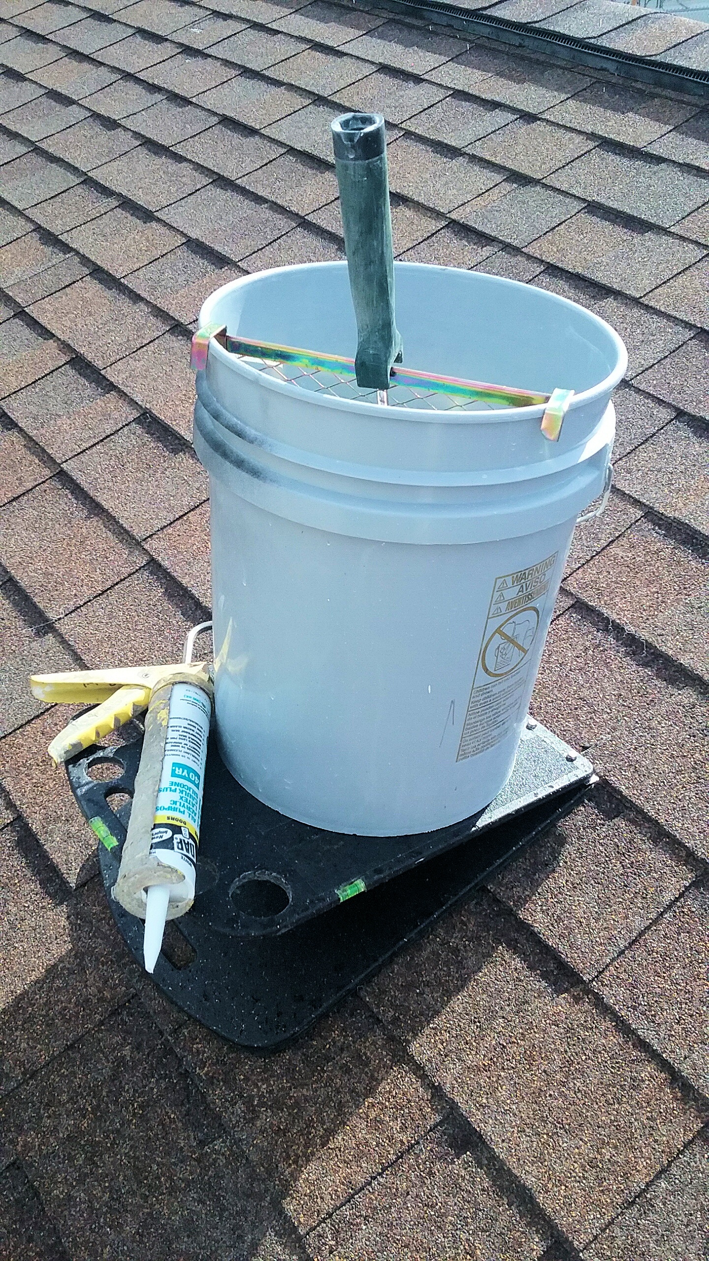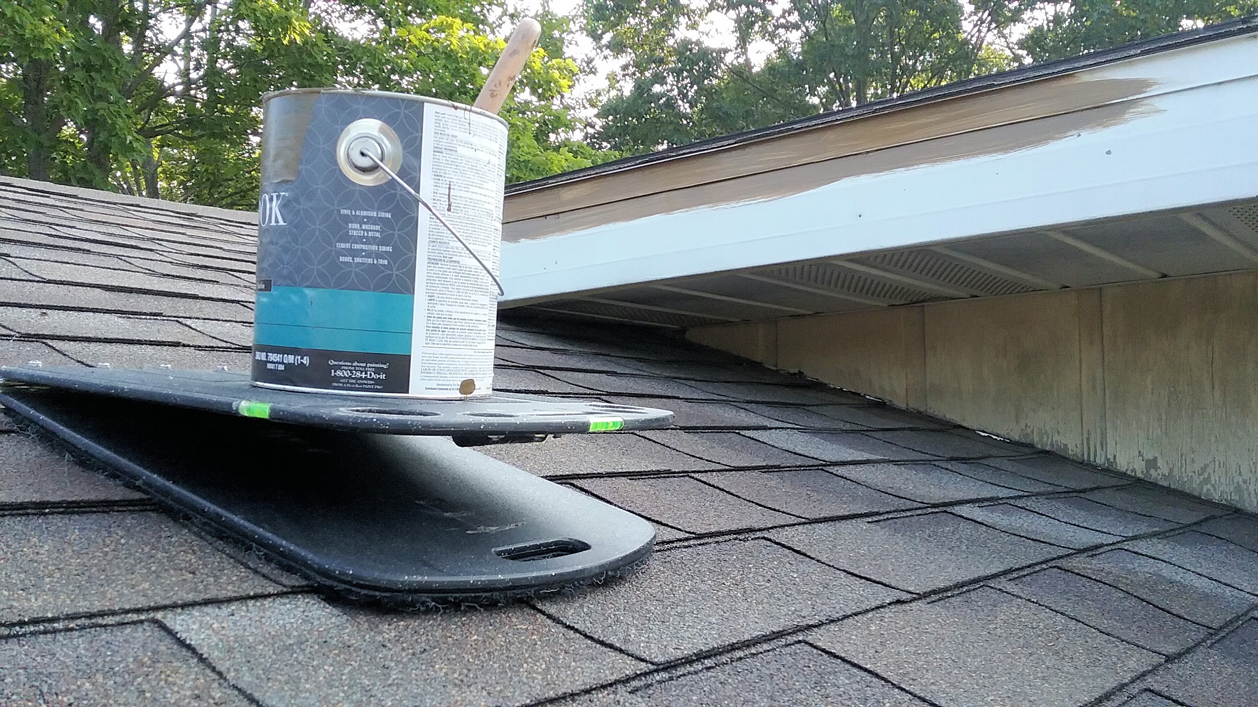 The Roof Rider is strong! With its strength harnessed in the steel hinge, the Roof Rider is capable of withstanding some weight. Although sitting on the Roof Rider is not recommended you can feel at ease knowing that while on a roof the Roof Rider will hold level and help prevent sliding of your tools or your one gallon paint cut can or even a five gallon bucket, removing the fear of sliding tools or spilled paint so you can concentrate on the job at hand.